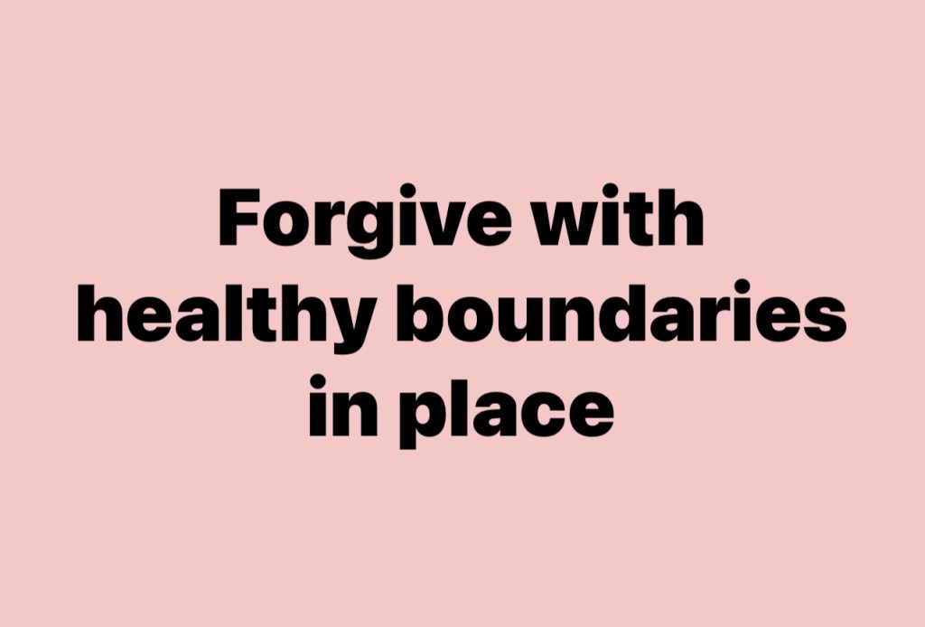 However, to forgive (let go of) them with YOUR HEALTHY BOUNDARIES in place, will heal you, protect you and keep you well. Your boundaries are telling others WHAT you will and will NOT accept from them. And it’s telling you that you care about the way you feel. This is self-love and self-respect.